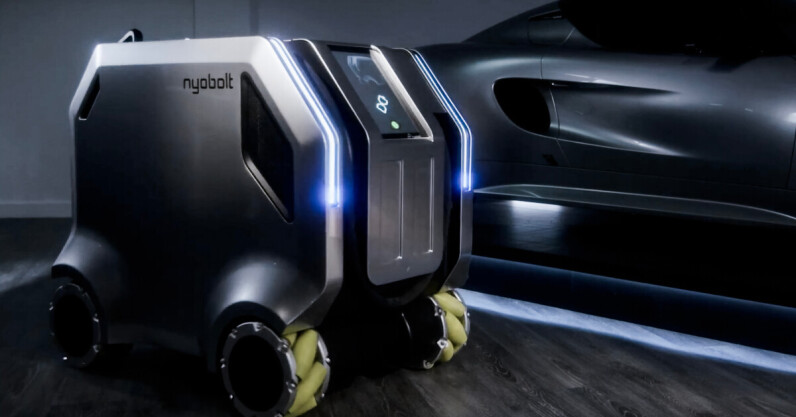 For UK battery startup NyoBolt, six seems to be the magic number. First, in June it showcased an EV that could be fully charged in just six minutes (a claimed record). And today it unveiled a new kind of supercharger that can also be recharged in — you guessed it — six minutes. Dubbed Bolt-ee, it essentially looks like a four-wheeled metal box with an interactive touchscreen for a face. Unlike fixed charging stations, this fast-charging, direct current, 300kW device is fully mobile. “Bolt-ee can reach a parked vehicle in any bay, delivering up to 100 miles of range in…